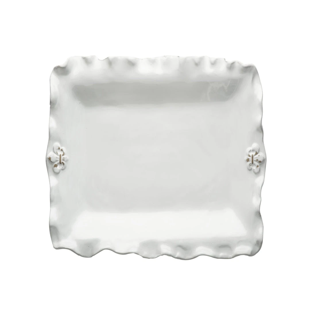 Make a statement with this attractive ruffled edge ceramic cake stand. Also looks great piled high with apples and holly as a holiday decoration. Handcrafted in Italy, the Fleur De Lis Collection is a bestseller.