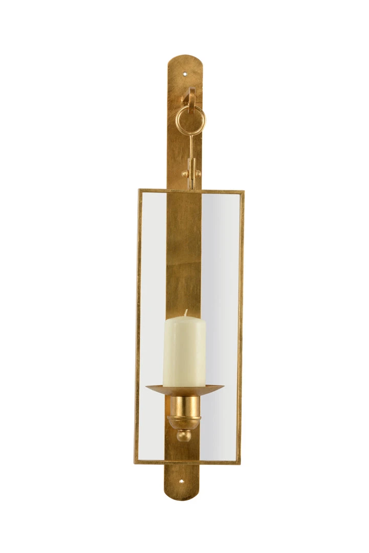 Gold Leaf Wall Candle Sconce With A Retangular Tempered Glass Panel.