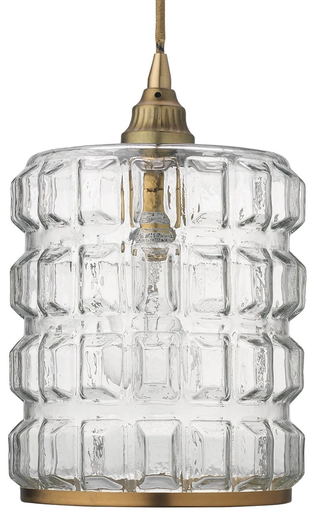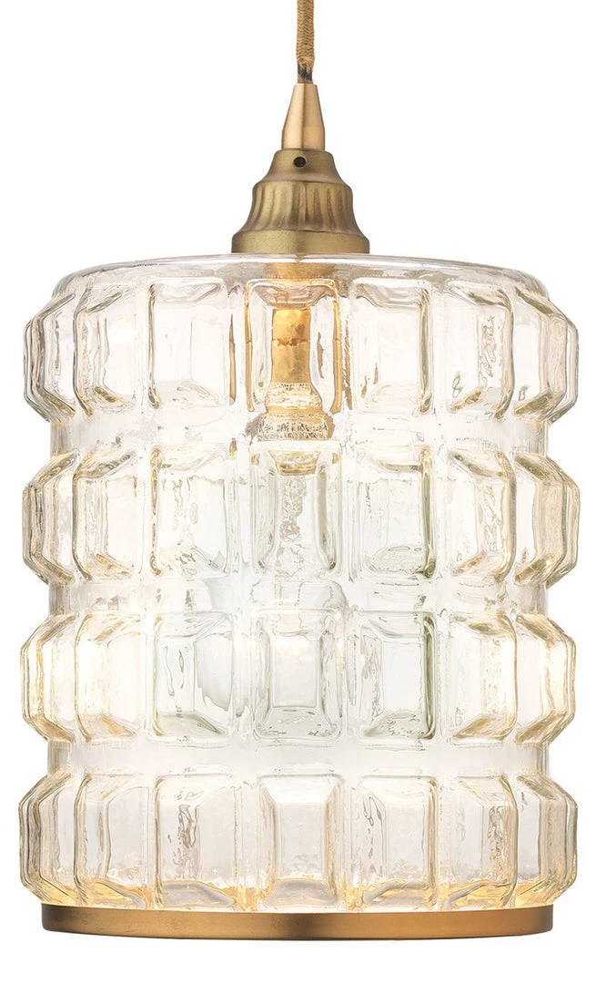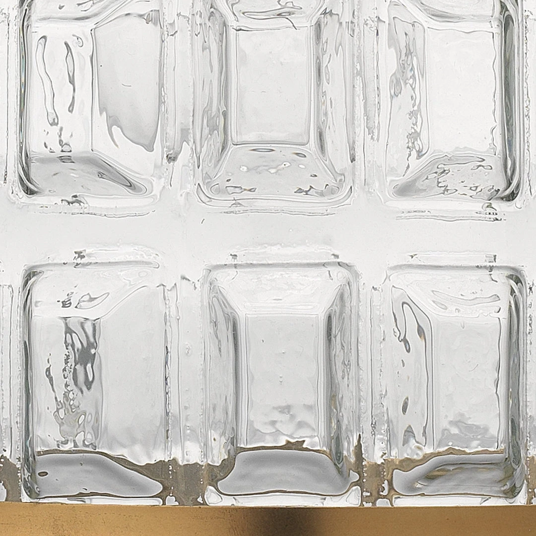 The glass block grid pattern and antique brass accents give it a cool retro Mid Century Modern look.