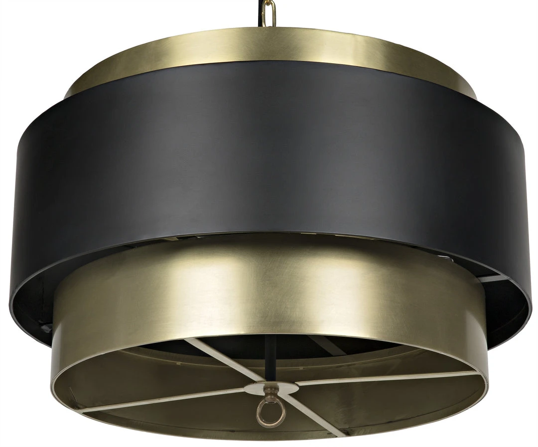 Add a strong sculptural element to any contemporary d_cor with this striking pendant from Noir. Each is handcrafted of metal with contrasting black and antique brass finishes. Modern and bold, its intriguing lines add style to your decor even when the bulbs within remain unlit.