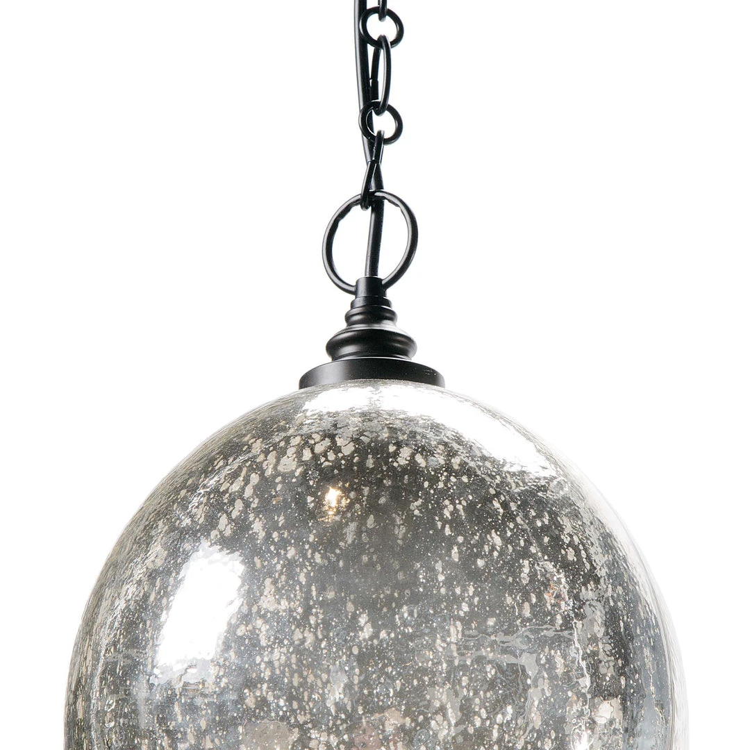 Glass with an Antique Mercury finish forms the dome shade of the Glass Float pendant. Black hardware makes for a chic accent. From modern to coastal, you?re sure to find an application for this piece in a kitchen or bathroom.