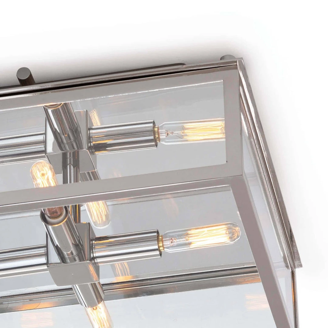 Not your average flush mount, the modern silhouette and classic details found within this fixture make for timeless design. Creating a touch of glamour, details like a mirrored backplate add an unexpected warm glow and elegance. Perfect for a bathroom, entryway or a hallway. Customize this piece by using traditional candelabra style bulbs or create a moody atmosphere with vintage T bulbs.
