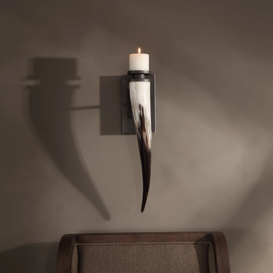 Featuring A Naturally Shed African Yellow Cattle Horn, Mounted On A Blackened Iron Plaque With Subtle Silver Highlights. Due To The Natural Material, Each Piece Will Vary Slightly In Color And Size. Includes One 3″ X 3″ Distressed Off-white Candle.