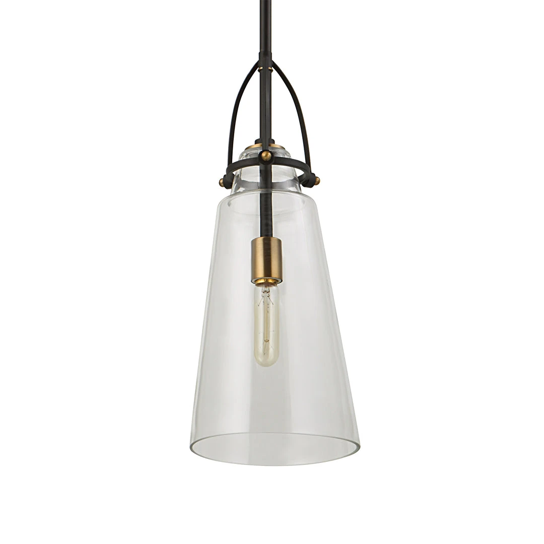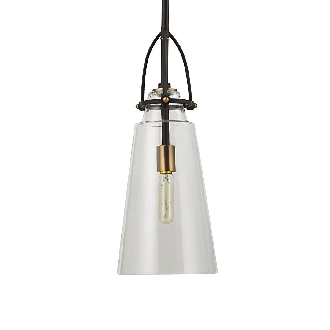 This Timeless 1 Lt. Mini Pendant Is Finished In Black With Antique Brass Accents Featuring Clear Glass And A Touch Of Rustic & Industrial Design. With 1-60 Watt Max, Edison Socket. Supplied With 15′ Wire, And 3-12″ Stems & 1-6″ Stem For Adjustable Installation.