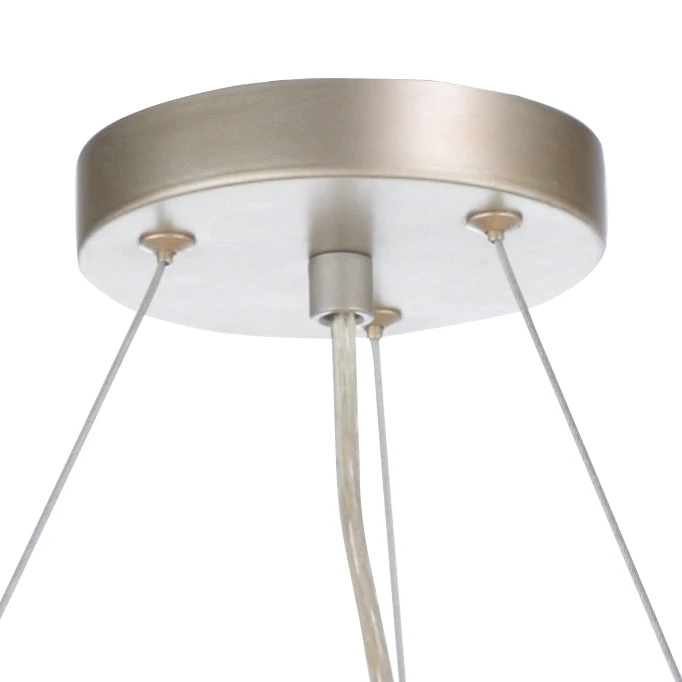 Champagne Finish On Drum, 5 Light Pendant With Antique Gold Leaf Interior, Comes With 3 Adjustable Cables.
