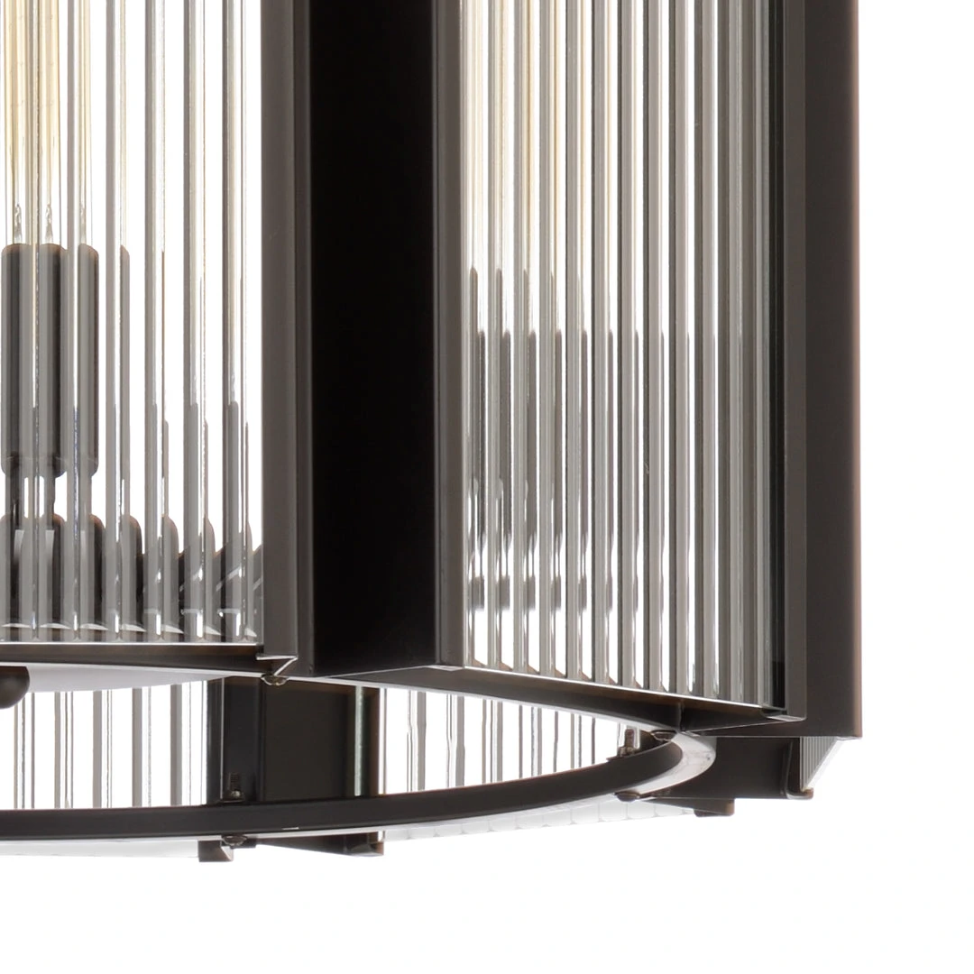 Antique Silver Leaf Finish With Clear Fluted Glass Panels, Comes With 8 Amber Edison Bulbs. Comes With 6 Feet Of Chain.