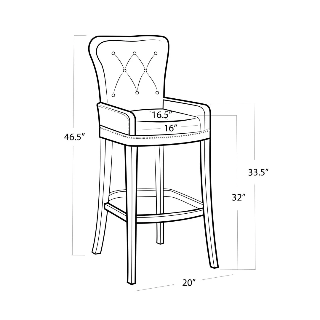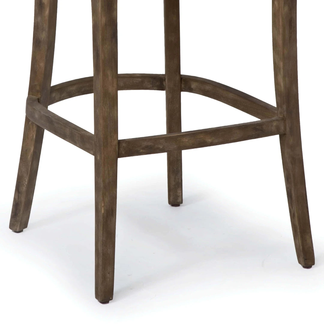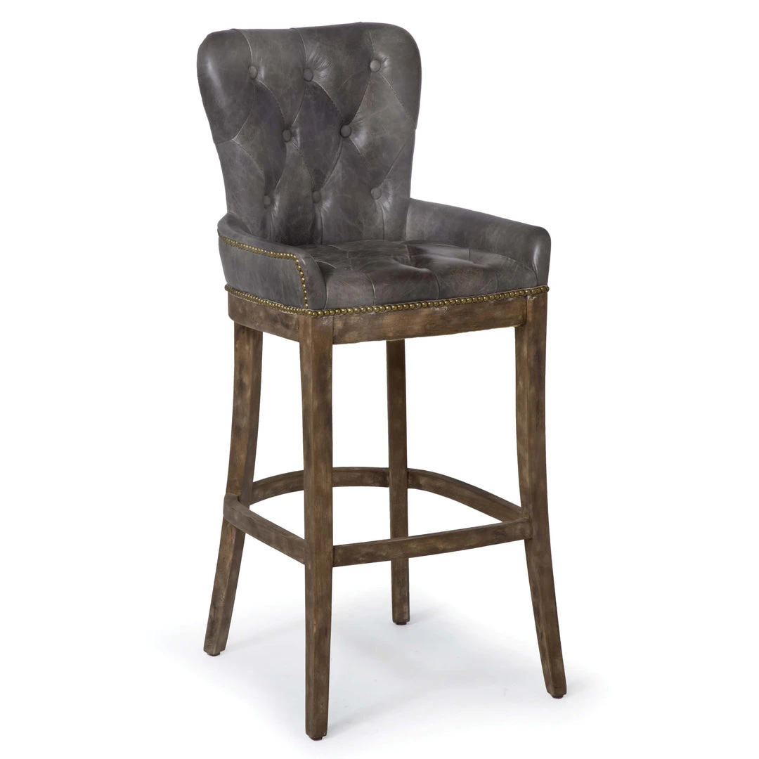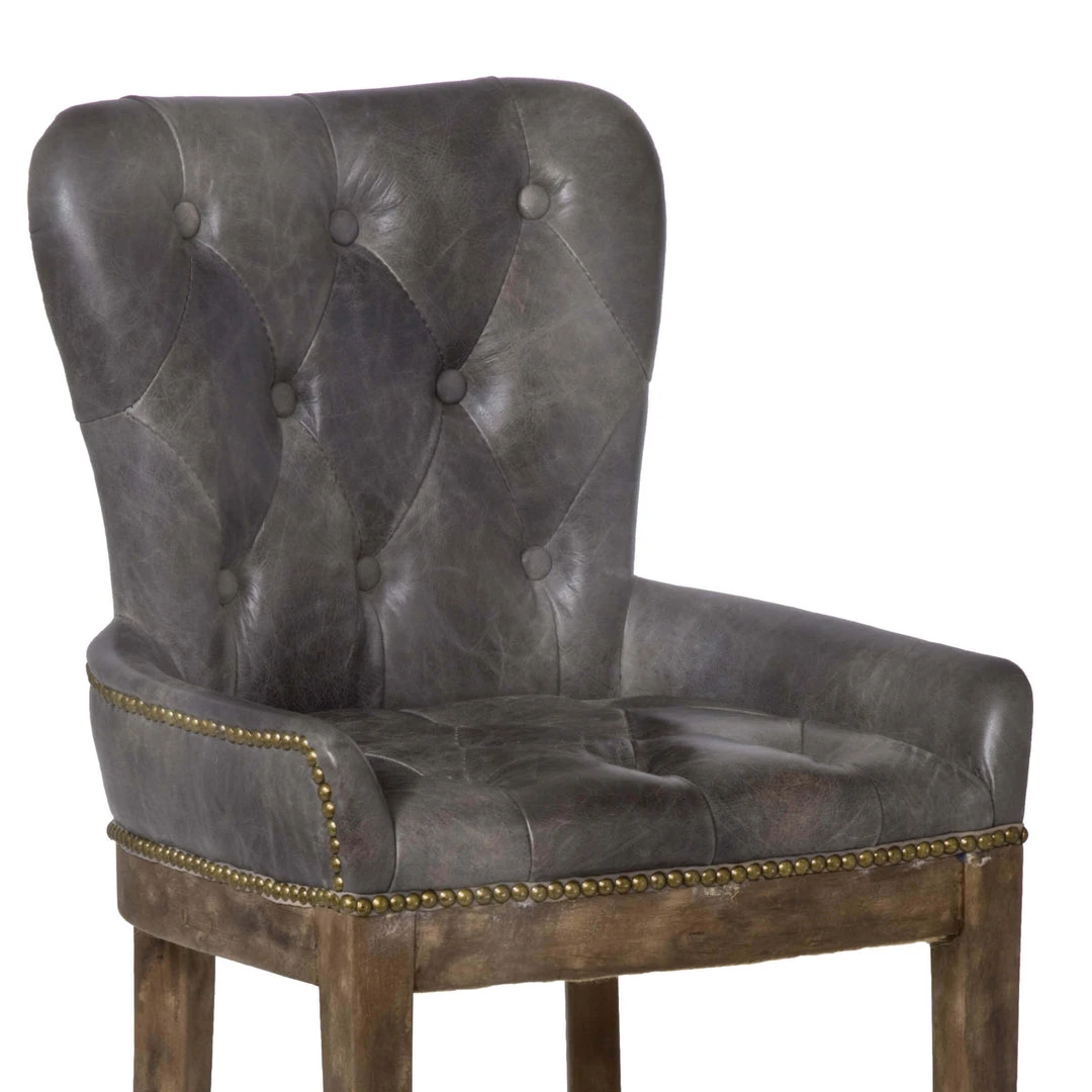 Hand tufted vintage leather with antique brass studs and aged wood recalls the look and feel of a classic clubhouse barstool. The subtle, structured arm cradles and directs the sitting direction for relaxed and comfortable pub pleasure.