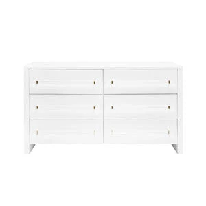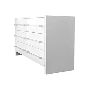 Our Luke six drawer chest delights with glossy white lacquer finish and sleek cylinder acrylic & brass hardware. A perfect accompaniment to your Farmhouse, Industrial or Mid Century interiors!