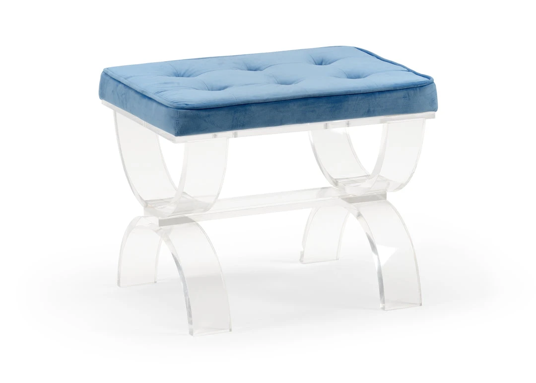 Clear Acrylic Bench With Blue Velvet Tufted Cushion