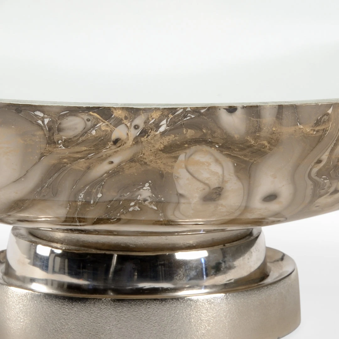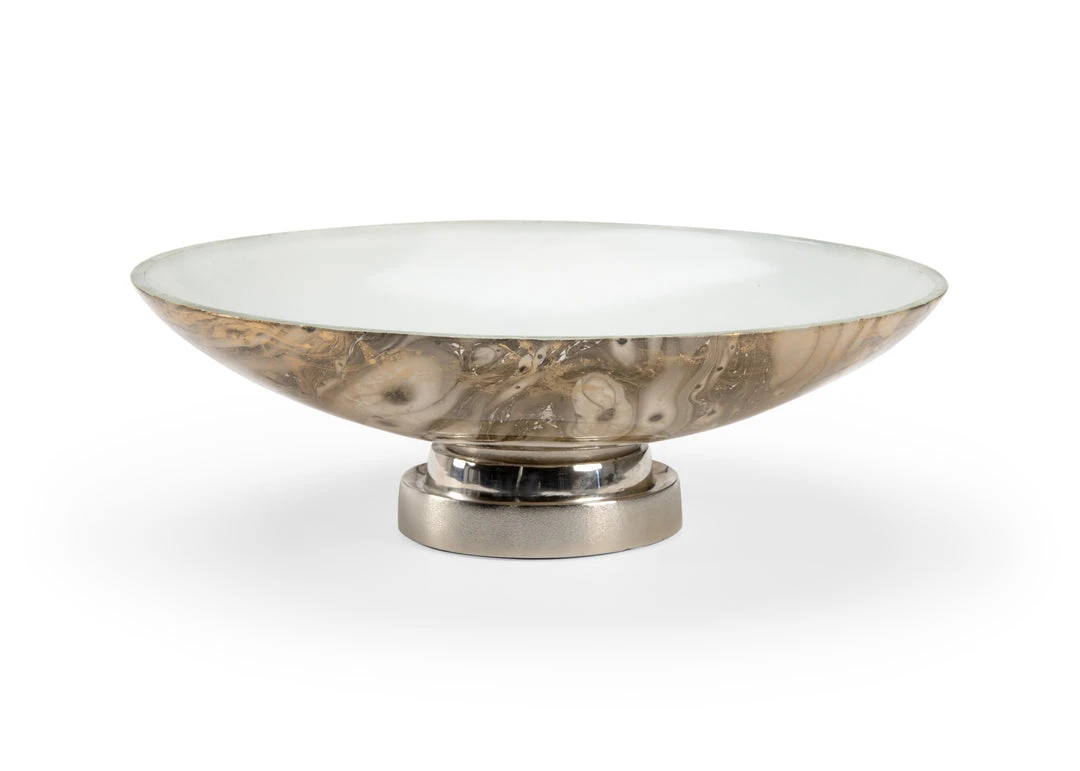 Be Mesmerized By The Swirls Of The Calacatta Gold… Sitting Atop An Aluminum Base With A Polished Nickel Finish, Cream, Gray And Gold Create A Marbled Pattern On The Striking Glass Bowl. The Swirls Add Visual Interest And A Sense Of Calm To Any Environment. Add Fruit And Display This Bowl On Your Kitchen Counter Or Table To Create A Stunning Centerpiece.