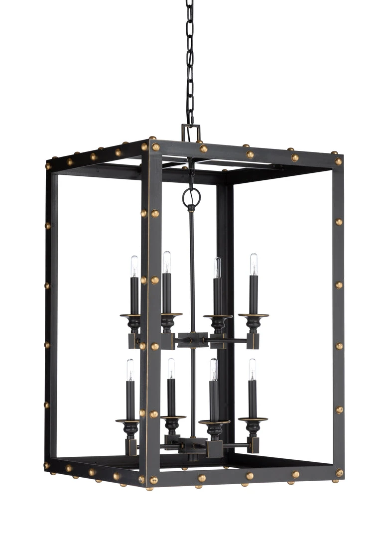 Bronze Finished Framed Chandelier With Gold Details Eight Lights. Comes With 6 Feet Of Chain.