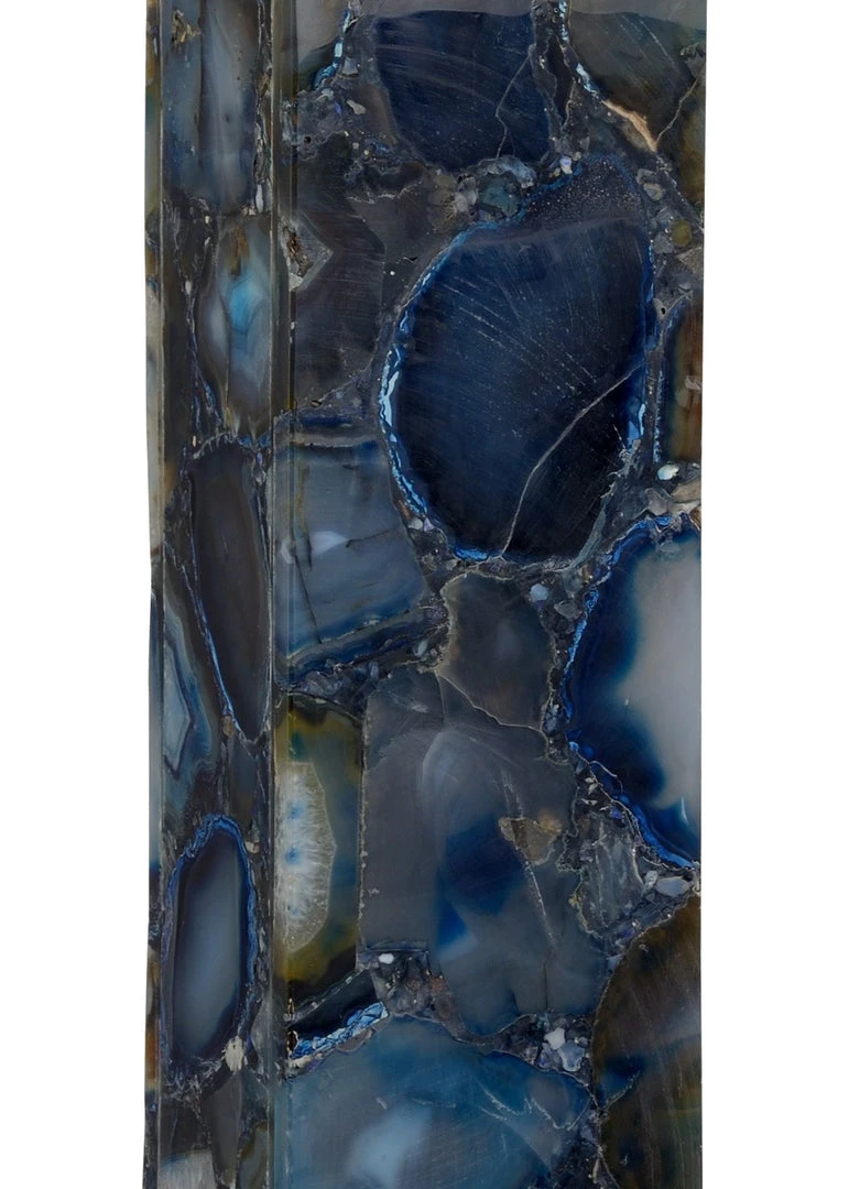 Blue Agate Square Vase On Black Marble Base And With Antique Brass Parts