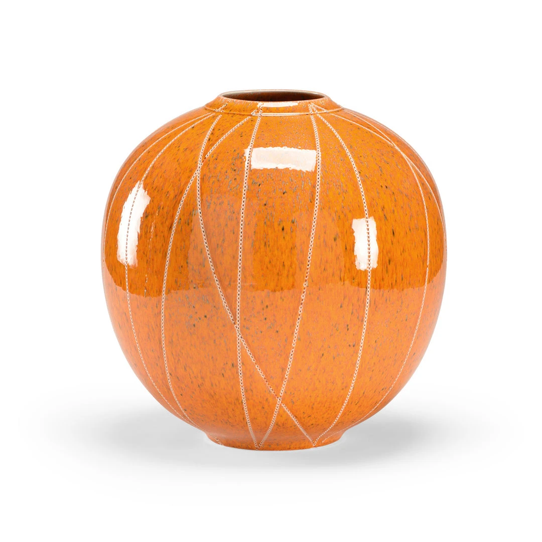 ORANGE “WOOL” DECORATION EURO CERAMIC. Dimensions: 13.5h x 14w x14d. Materials: Euro Ceramic. Finish: Orange “Wool” Decoration. Weight: 12 lbs.