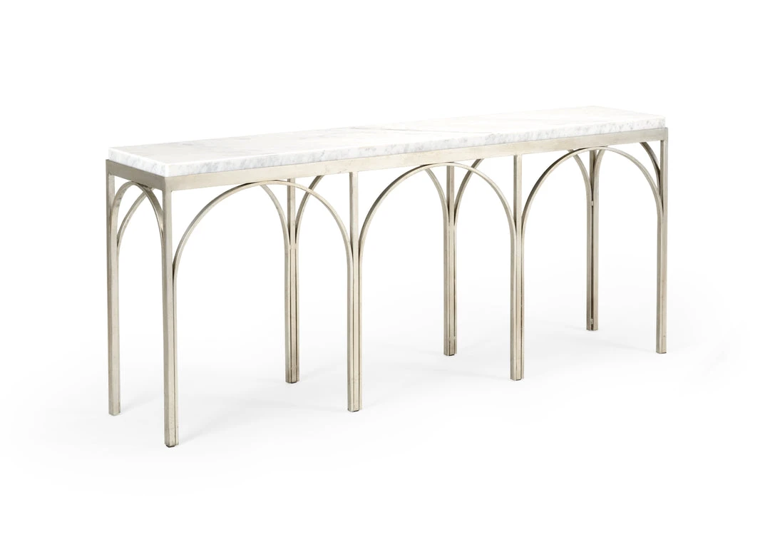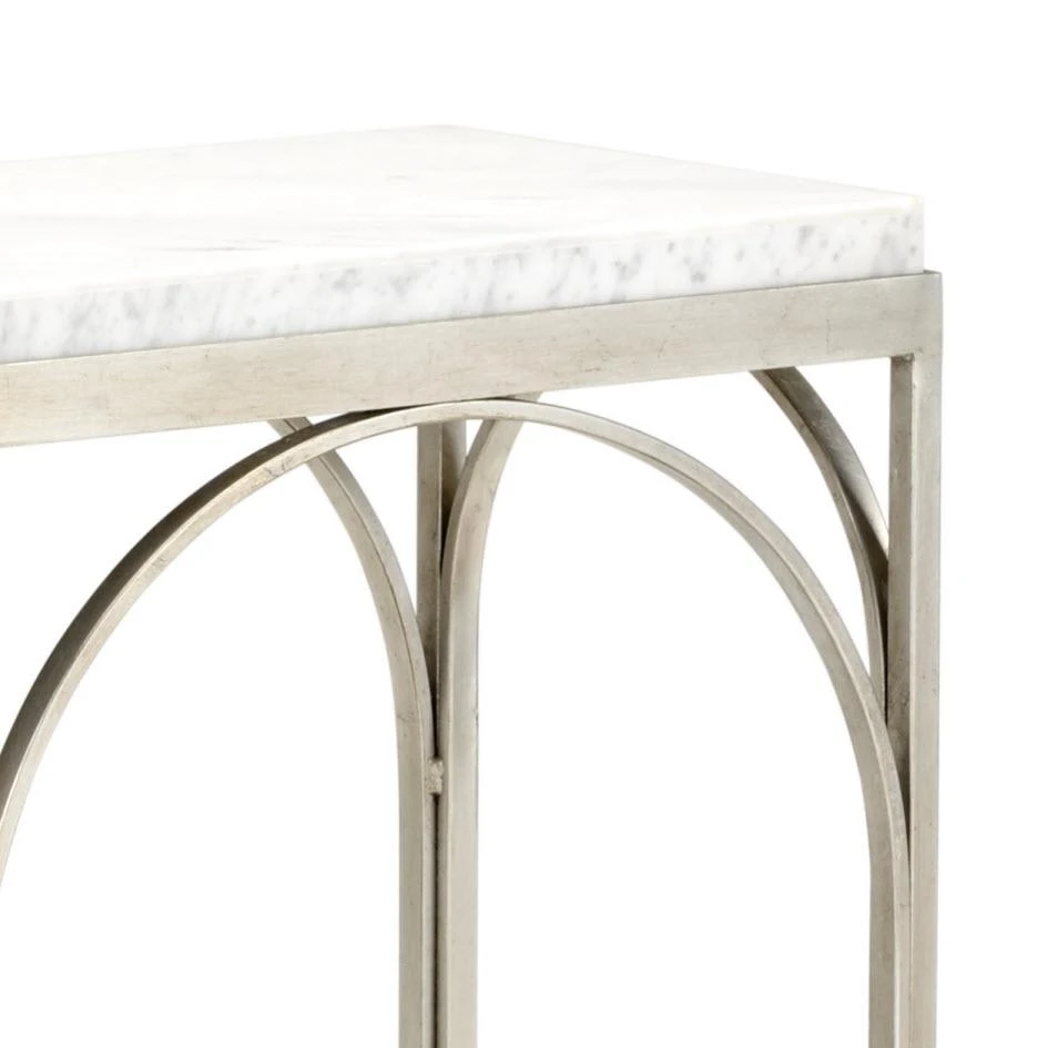Natural Gray Marble On Antique Silver Leaf Iron Base