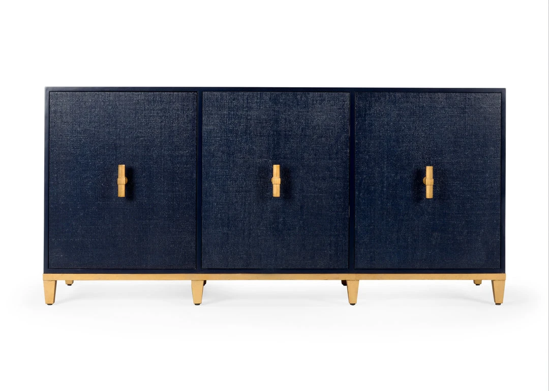 Wood Console With Raffia Covered Doors, Two Shelves And Gold Leaf Finished Hardware. Not Intended For Clothing Storage.