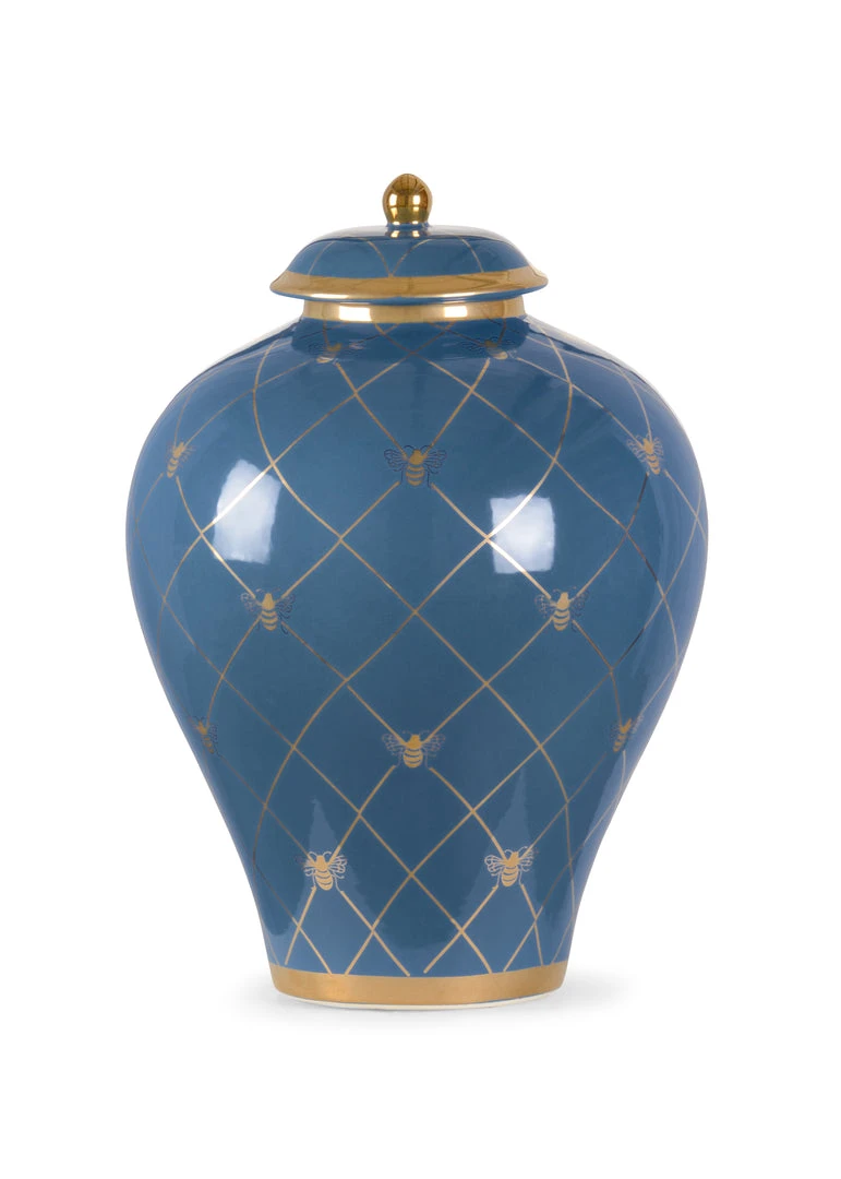 A Countertop Version Of A Ginger Jar Offering A Vibrant Color Palette With Metallic Satin Gold Detailing. Designed By Shayla Copas.
