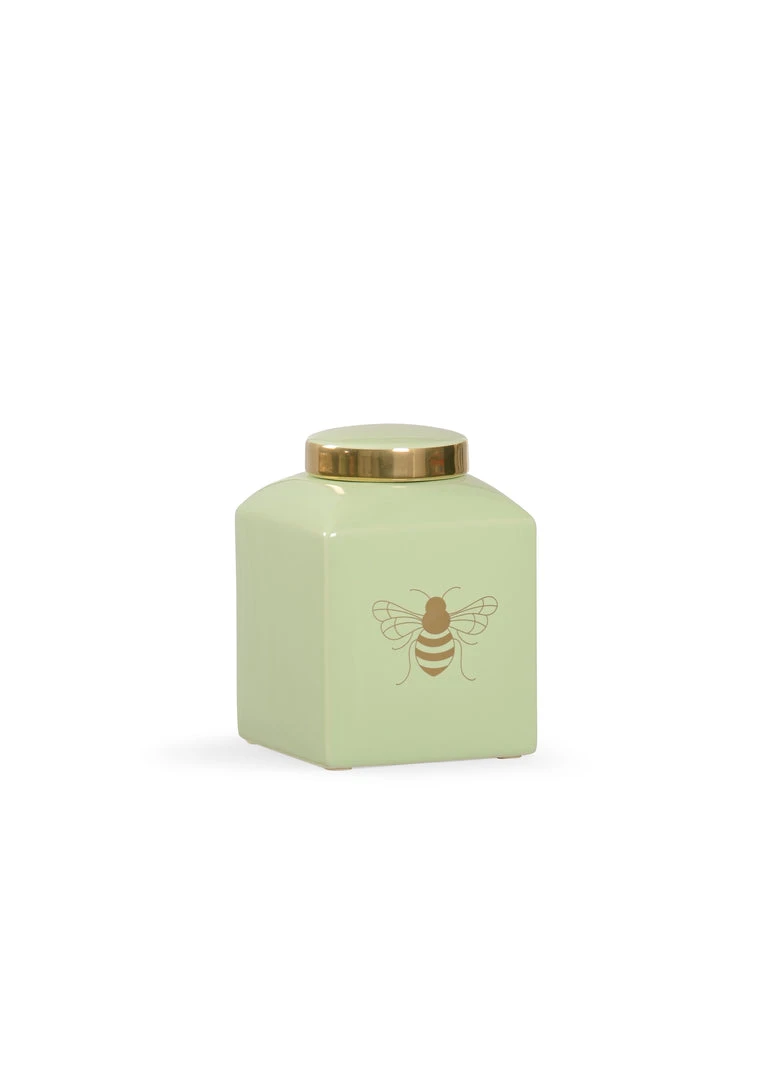 A Charming, Mini Table-Top Version Of A Traditional Ginger Jar Featuring A Royal Bee In Metallic Satin Gold. Available In A Variety Of Colors. Designed By Shayla Copas.