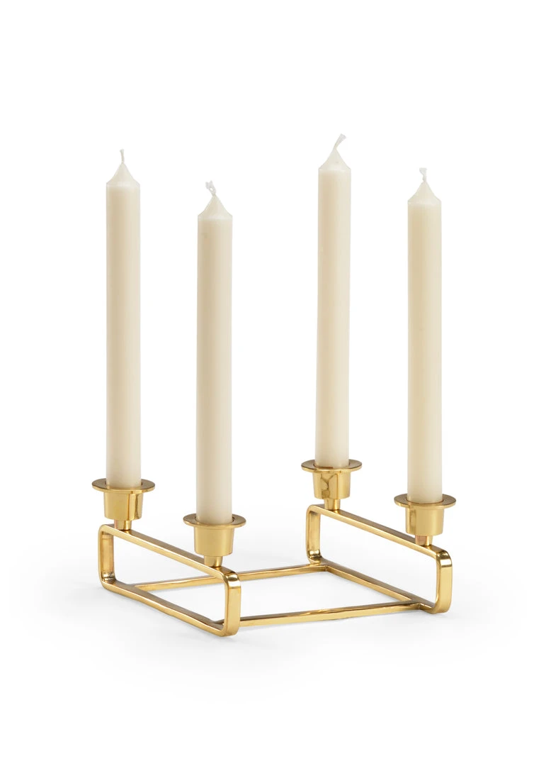 Square Metal Candleholder For Four Candles In Antique Brass Finish