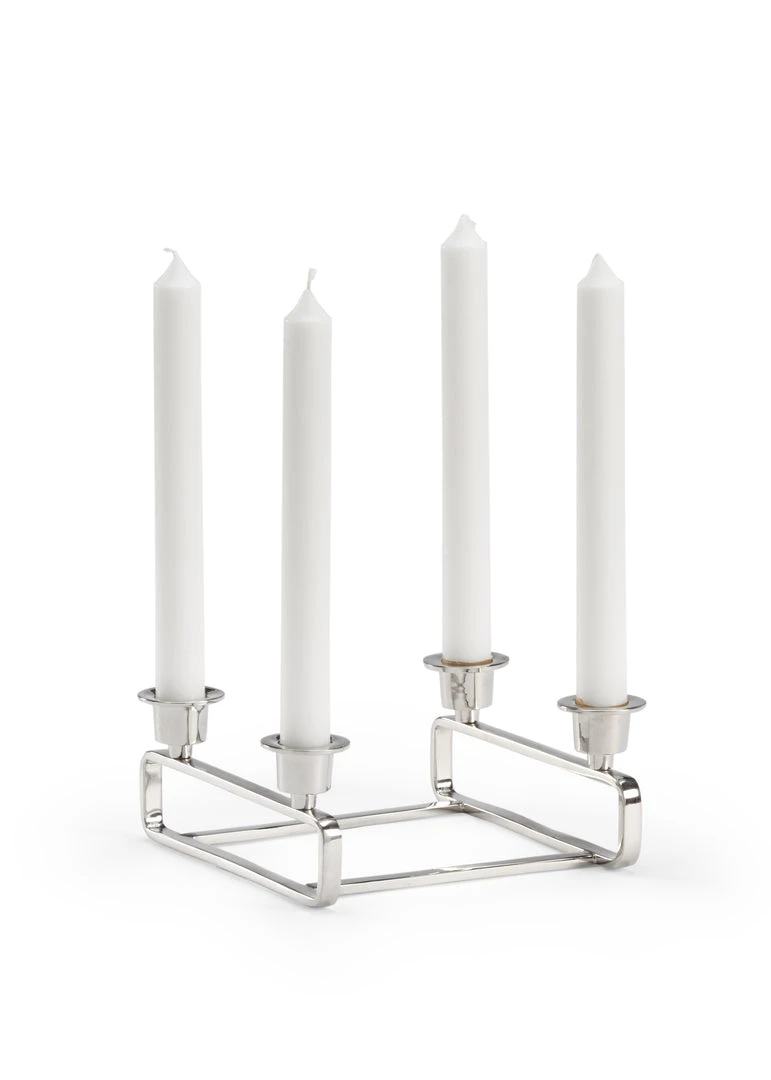 Square Metal Candleholder For Four Candles In Polished Nickel Finish