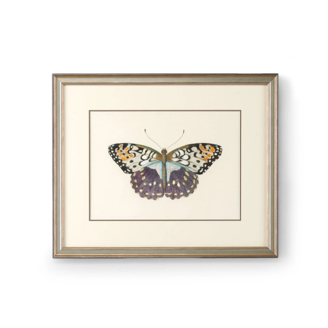 Hand Painted Lithograph,double Mat Antique Silver Frame Art From La Casa/Smp# Butterfly Violet