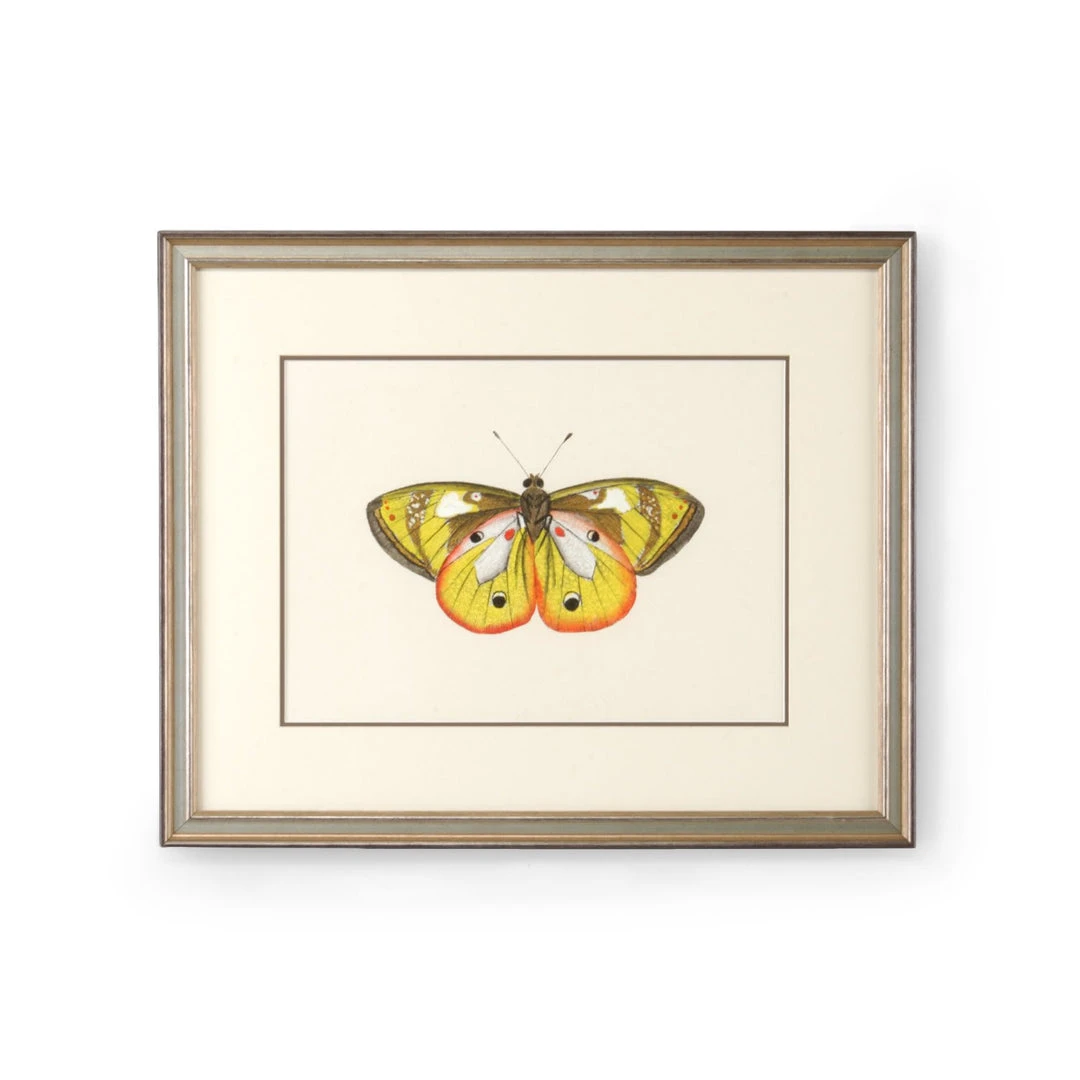 Hand Painted Lithograph,double Mat,antique Silver Frame Art From La Casa/Smp# Butterfly Yellow