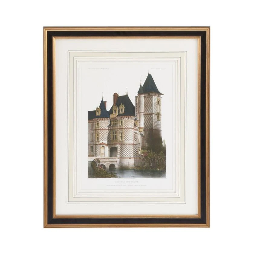 Lithograph Print Black And Gold Frame With French Mat