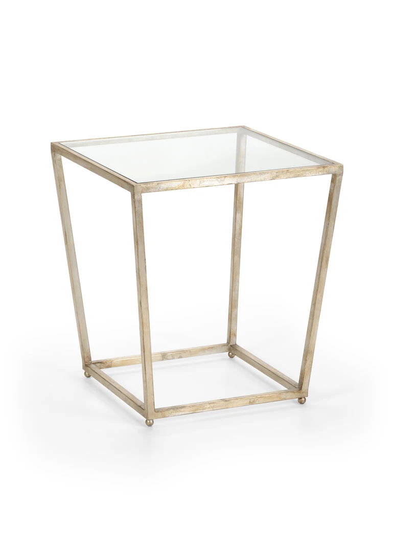 Side Table With Antique Silver Leaf On Iron And A Clear Tempered Glass Top With Beveled Edges, Designed By Jamie Merida.