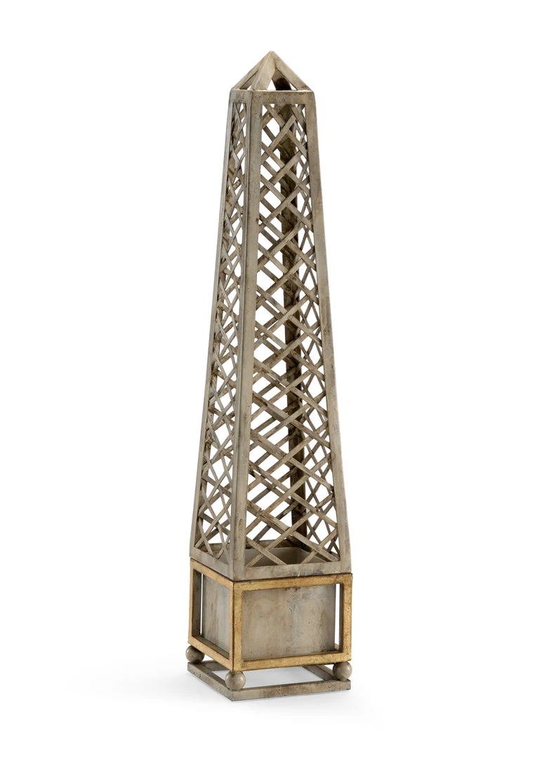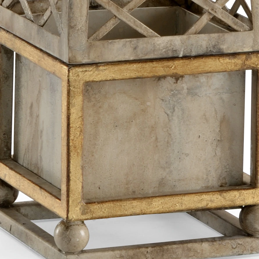 Aged Beige Finish On Steel Planter With Antique Gold Details, Designed By Bradshaw Orrell.