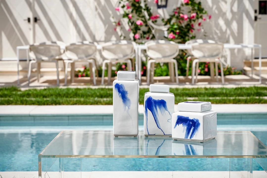- Finish: White/Cobalt Glaze