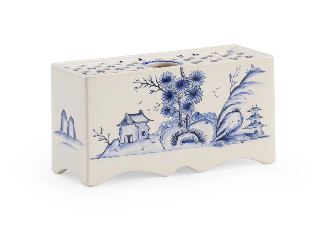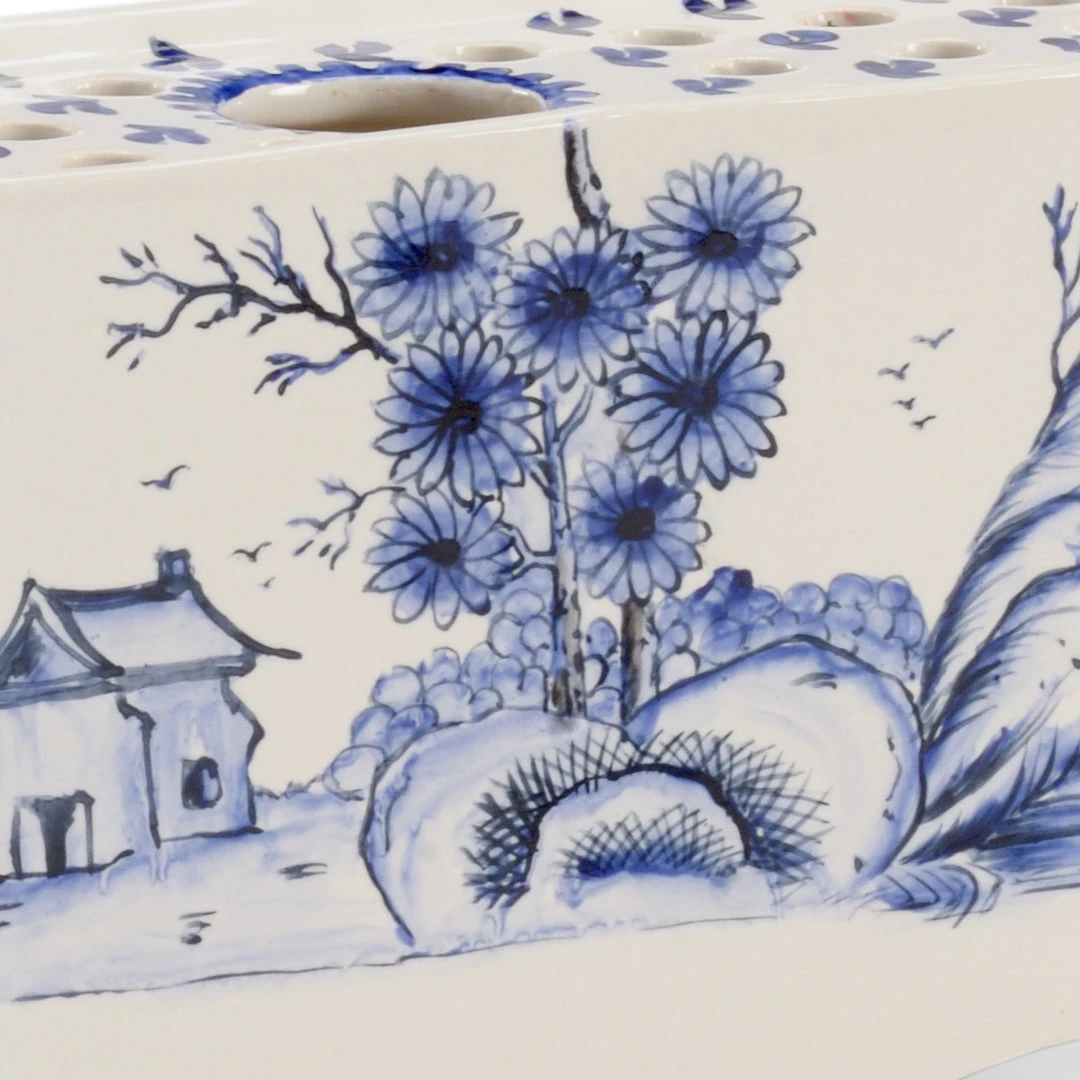 Hand Painted Antique Reproduction Delft Flower Brick With Shaped Bottom.