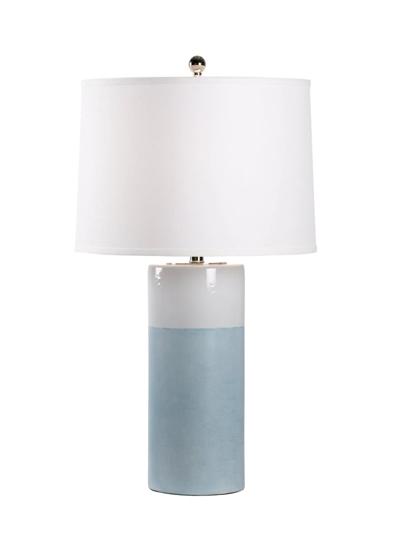 Aqua And White Glazed Ceramic With Polished Nickel Finished Parts Hand Painted
