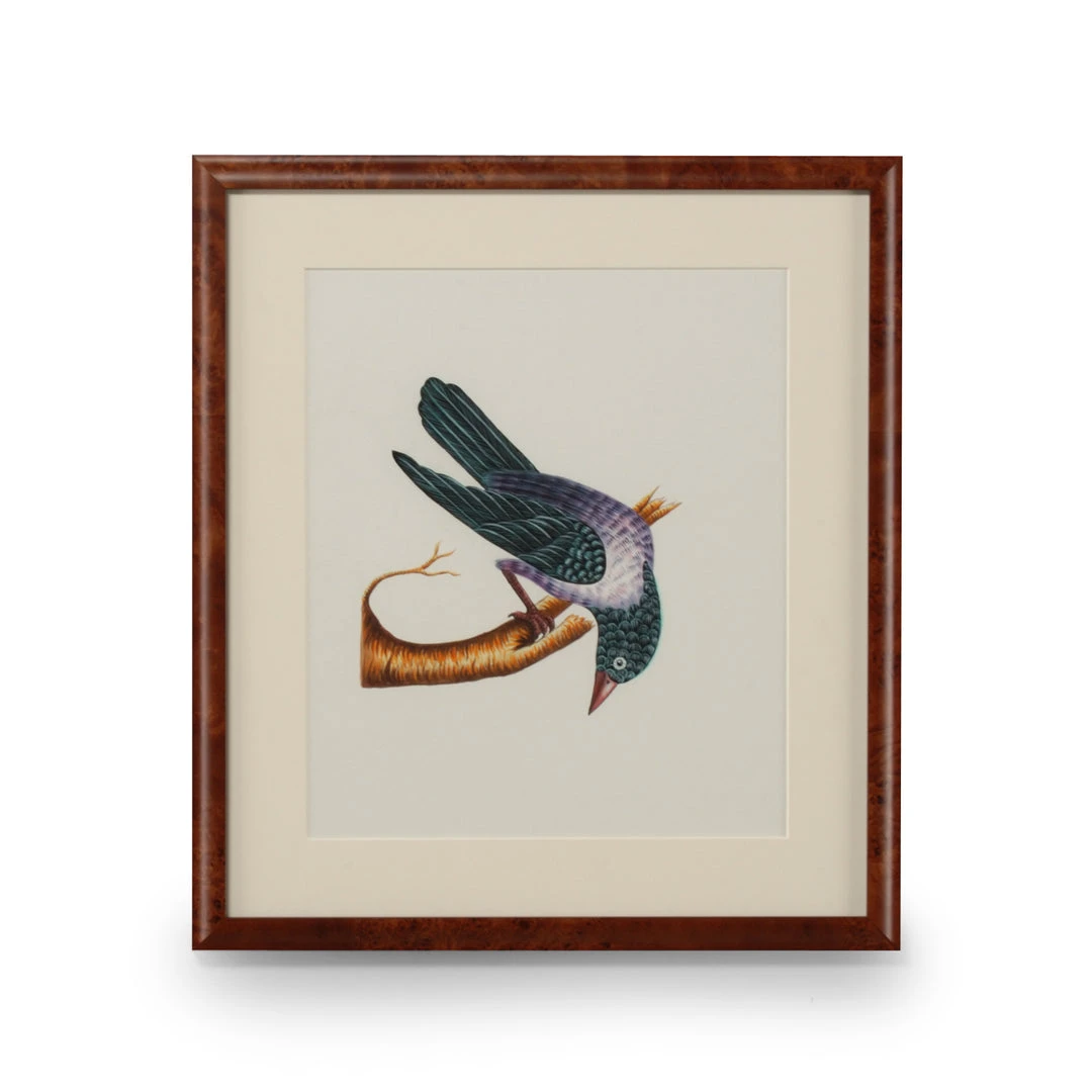 Hand Painted Watercolor, Walnut Burl Frame, Single Mat