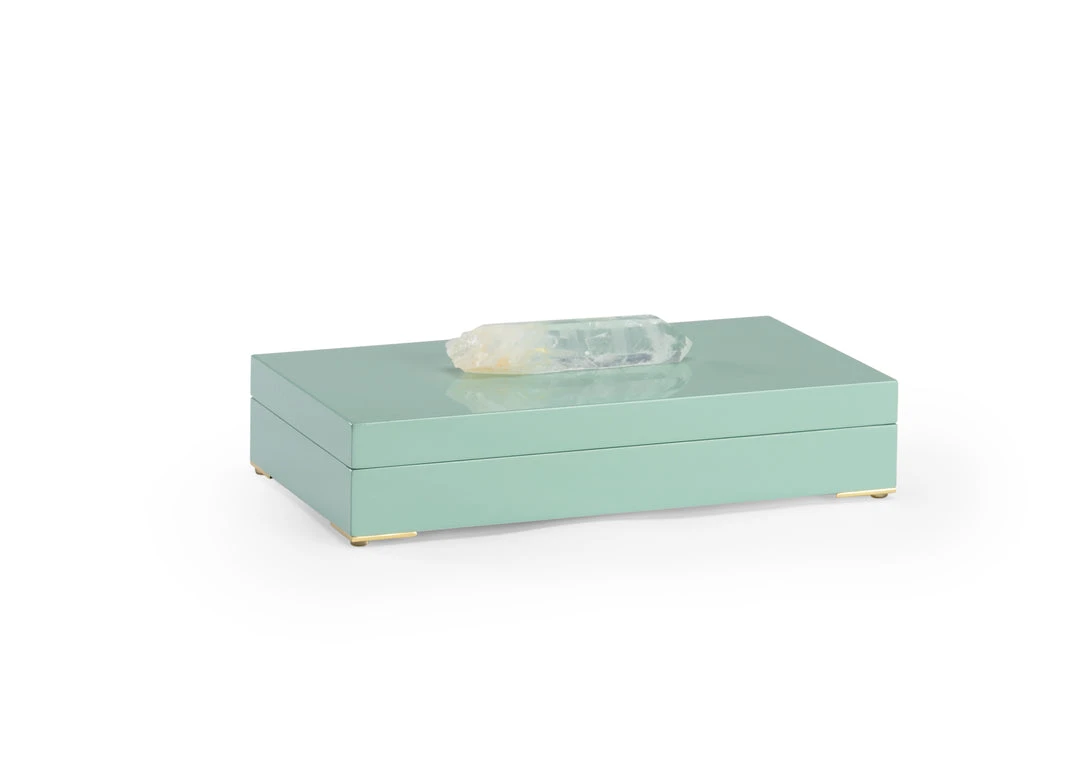 Mint Green Lacquered Wood Box With Rock Crystal Handle
