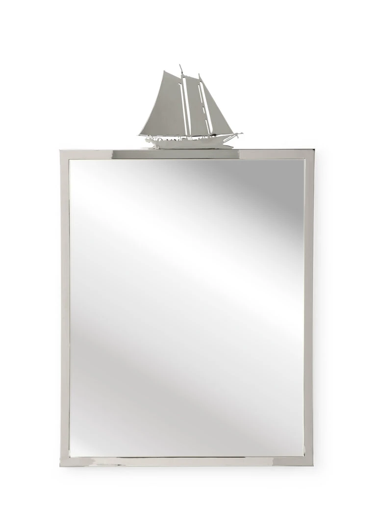 Nickel Plated Metal Mirror Frame With Sailing Ship Top.
