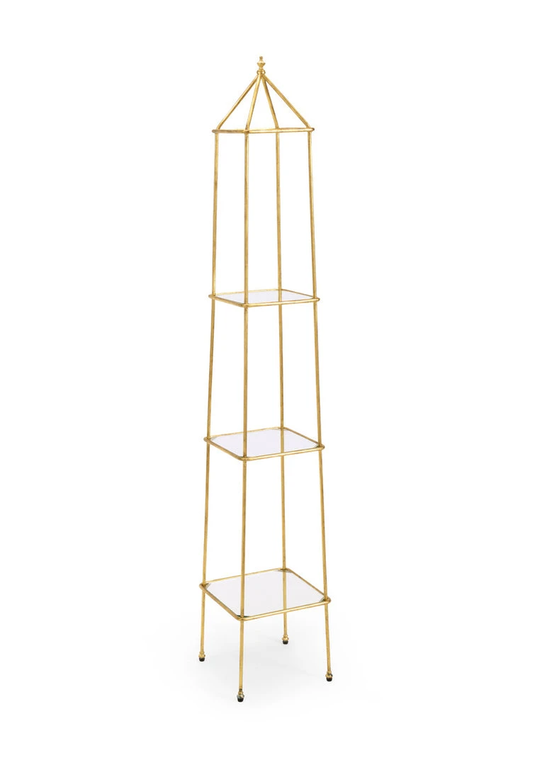 Gold Leaf Finished Frame With Three Glass Shelves.