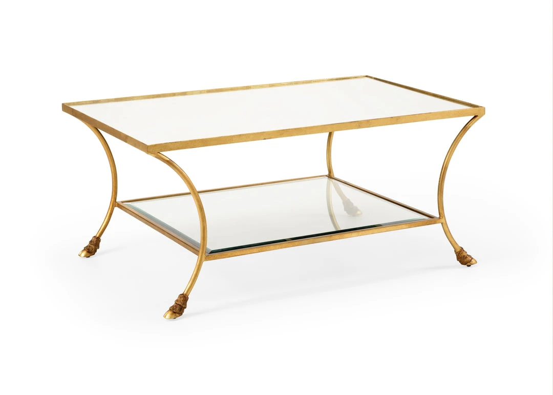 Classic Kendal Coffee Table In Gold Leaf With Glass And Mirror Shelves.