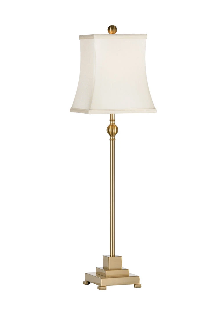 Enhance Your Dining Experience With A This Simple Yet Elegant Buffet Lamp. Featuring An Antique Brass Finish On A Square Tiered Base, Straight Column And Small Orb, Kensington Buffet Lamp Is A Transitional Design That Will Illuminate Your Space. A Square Cream Shade And Classic Ball Finial Complete The Look.