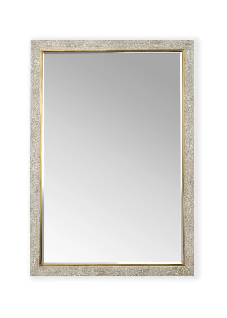 Shark Gray Shagreen On Wood With Plain Mirror And With Polished Brass Finished Iron Trim