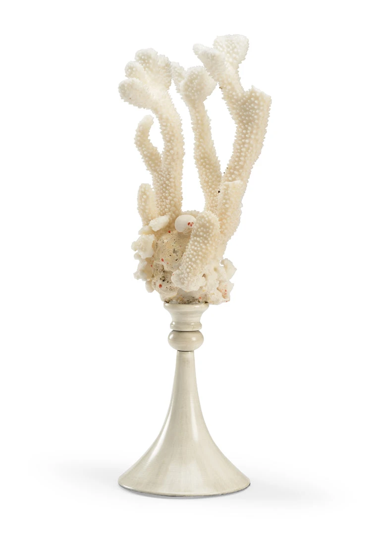 A Piece Of Natural White Staghorn Coral Atop An Antique White Painted Iron Stand Creates A Nature Inspired Accent For Your Coastal Home, This Stunning Accent Is Impressive On All Sides And Will Make A Lovely Statement On Your Cocktail Or Sofa Table. Coral May Vary.