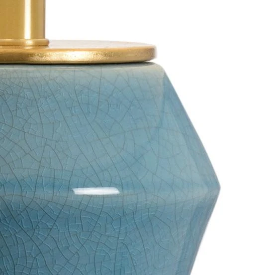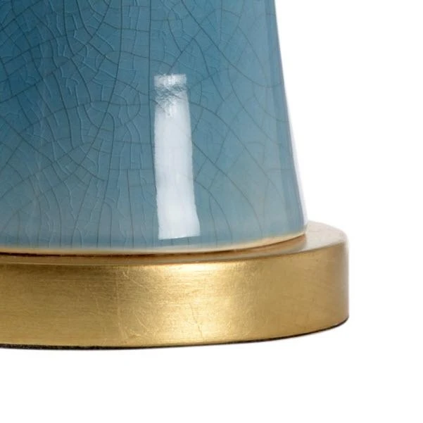 Gray Blue Crackle Glazed Ceramic With Antique Gold Leaf Wood Cap And Base And With Antique Brass Parts