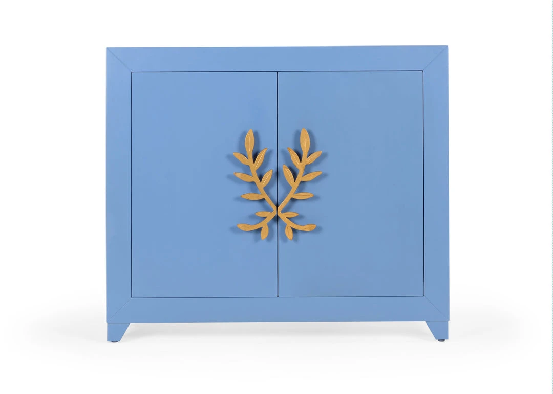 Two Door Wooden Chest In Blue With Vine Handles In Gold Leaf. Not Intended For Clothing Storage.