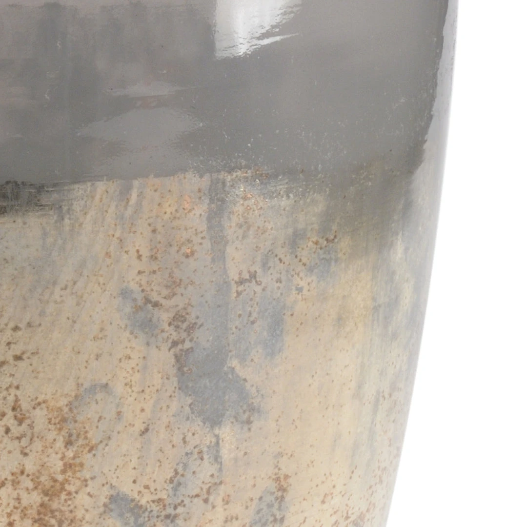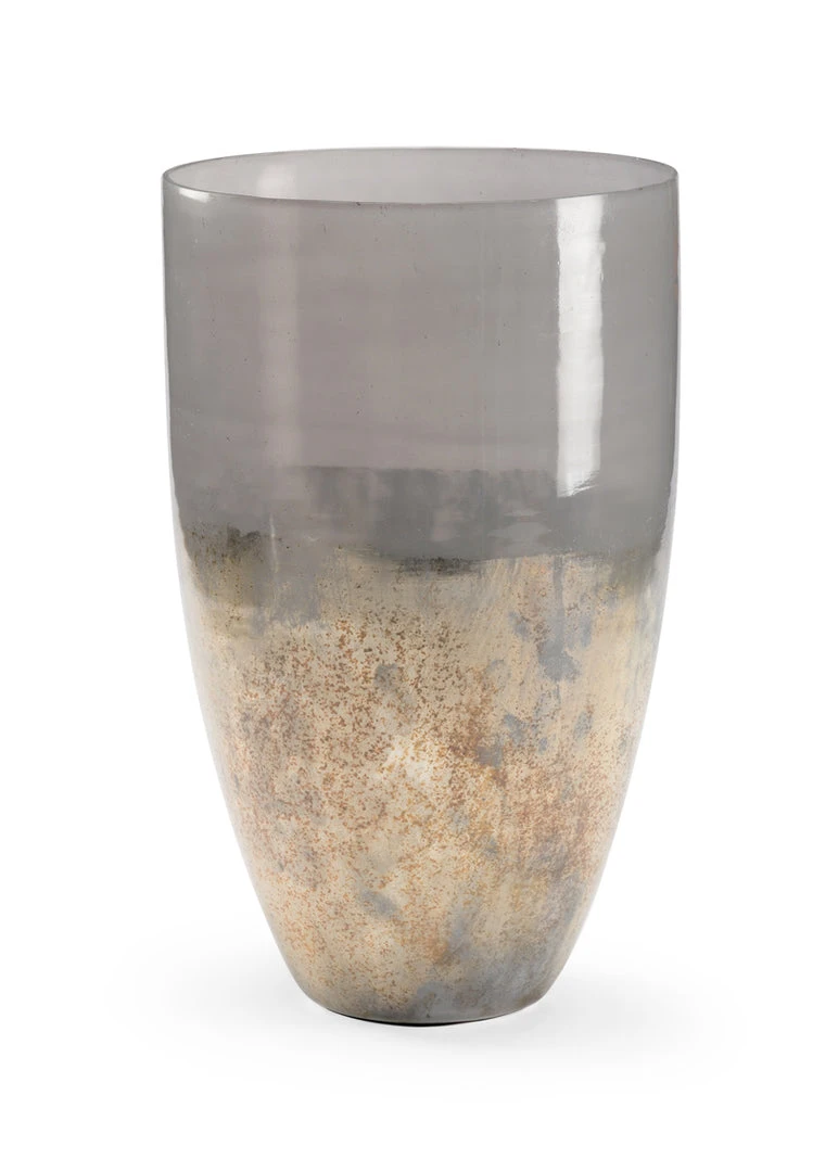 Zinc colored glass vase with rusticated white.