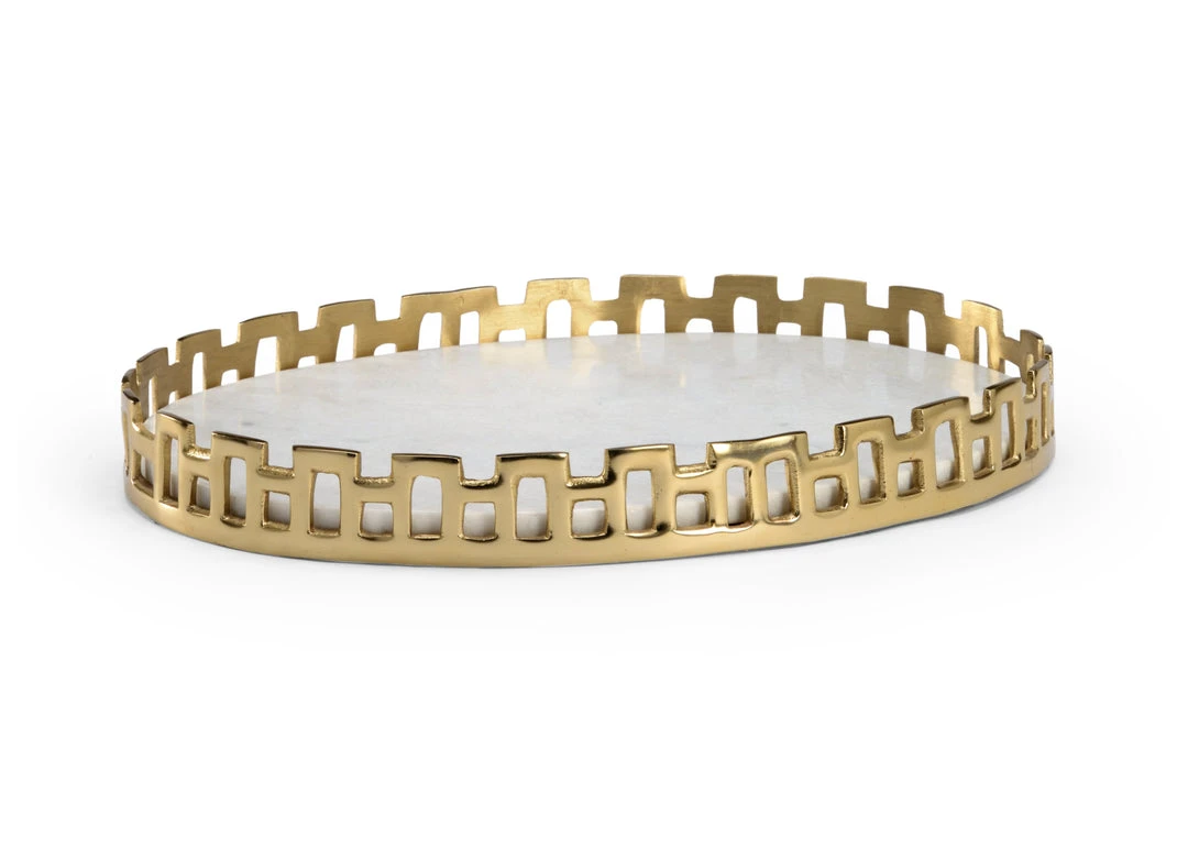 Antique Brass Finished Metal Tray With Natural White Marble Inside.