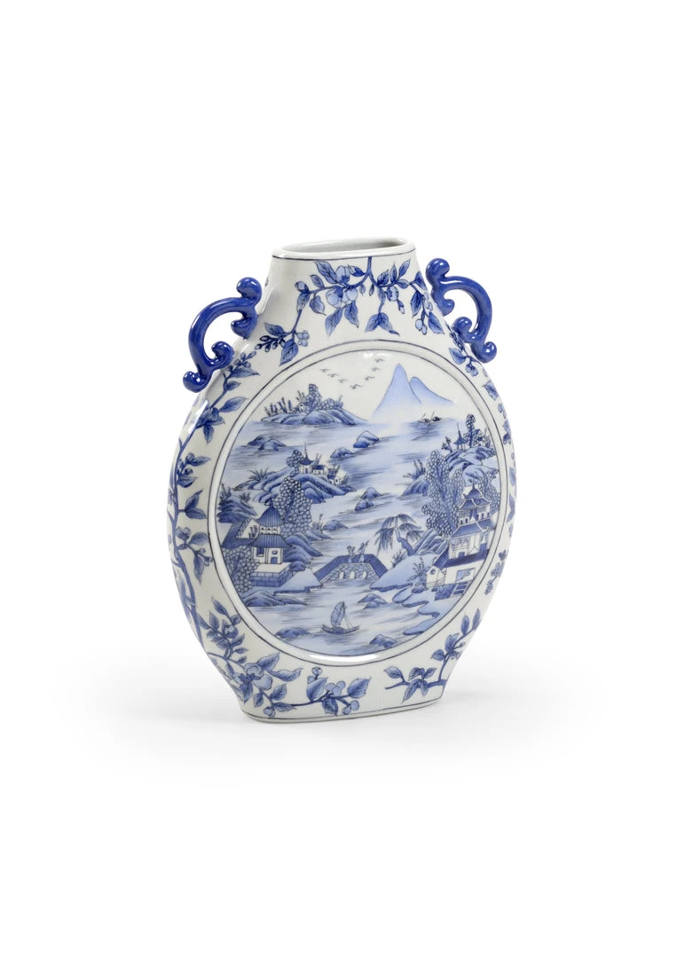 Blue And White Glazed Ceramic Vase With Handles