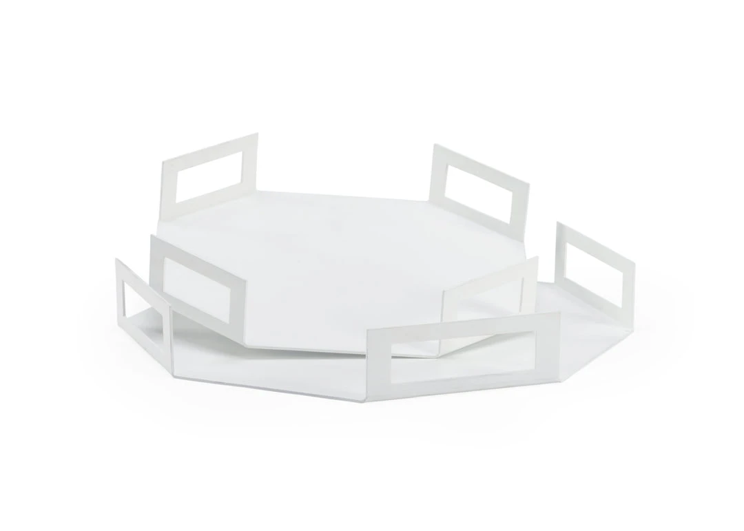 Set Of Two Handled Iron Trays In White Lacquer.small Tray 3h X 17w X 17d