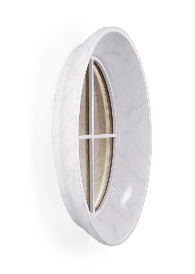 Oval Wood Concave Frame With A Cream And Black Finish And Antique Mirror.
