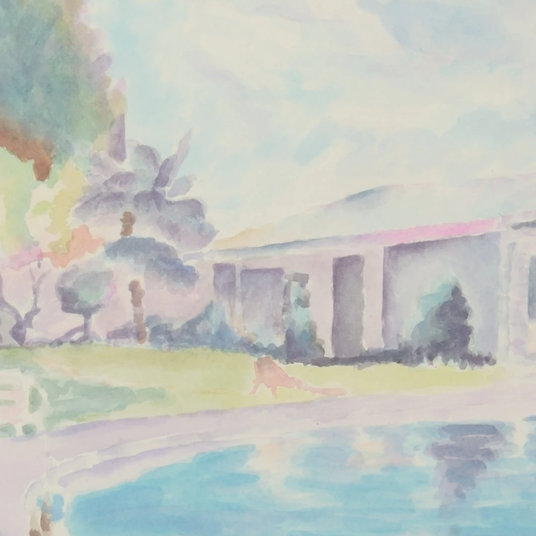 Watercolor, White Frame With Glass, White Mat, Designed By Bradshaw Orrell.