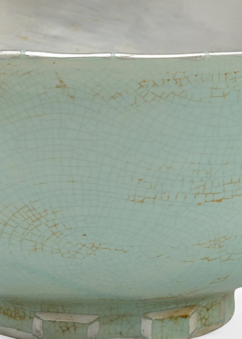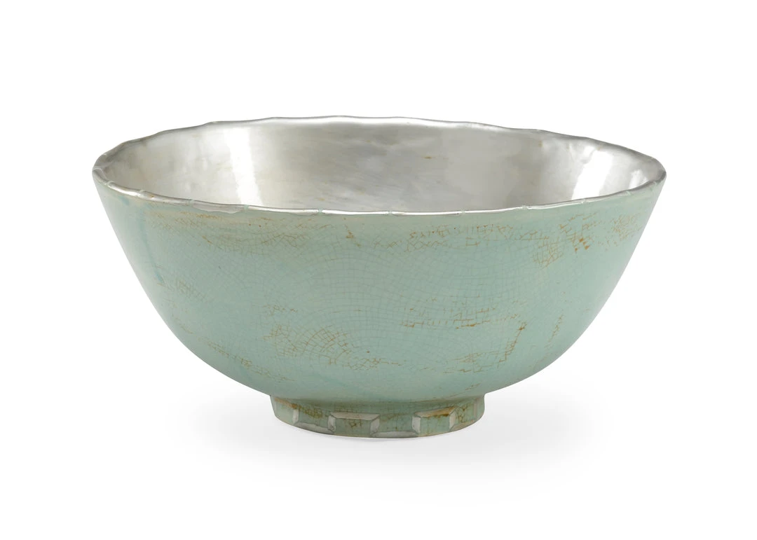 Antique Mint Green Porcelain Bowl With Antique Silver Inside, Designed By Bradshaw Orrell.