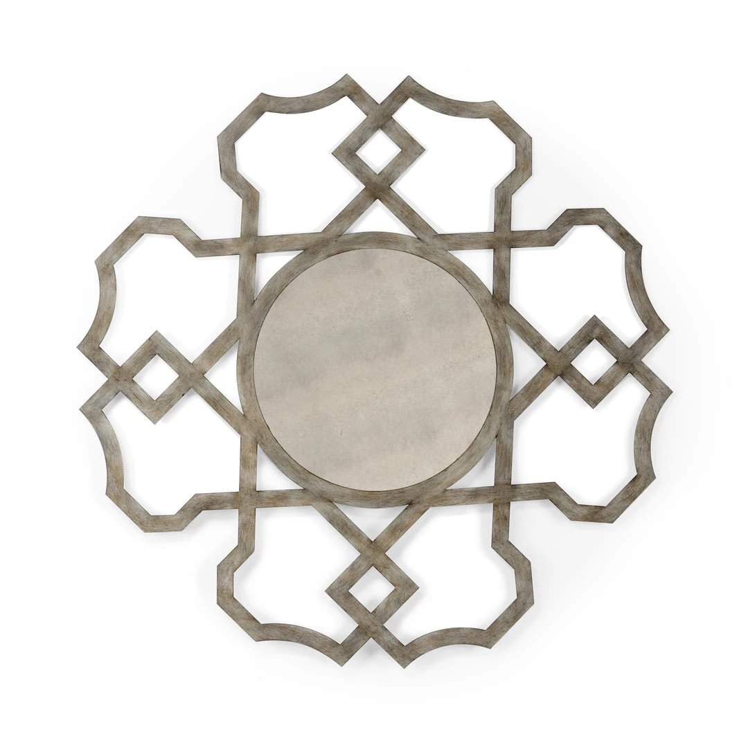 Antique Silver Painted Octagonal Shaped Iron Frame With Around Antiqued Plain Mirror