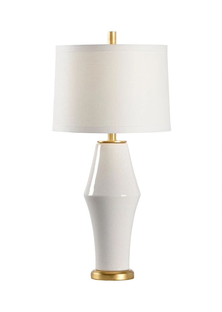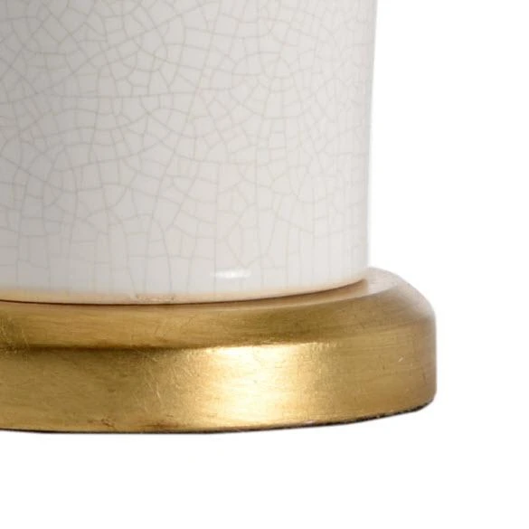 White Crackle Glazed Ceramic With Antique Gold Leaf Wood Cap And Base And With Antique Brass Parts